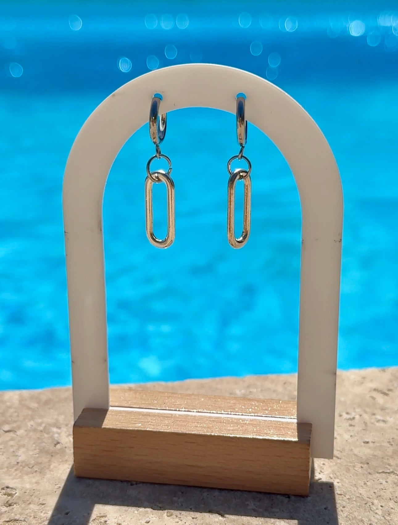 Les boucles d’oreilles sont en acier inoxydable donc aucun soucis pour la plage, piscine, douche… idéale pour cet été non ?