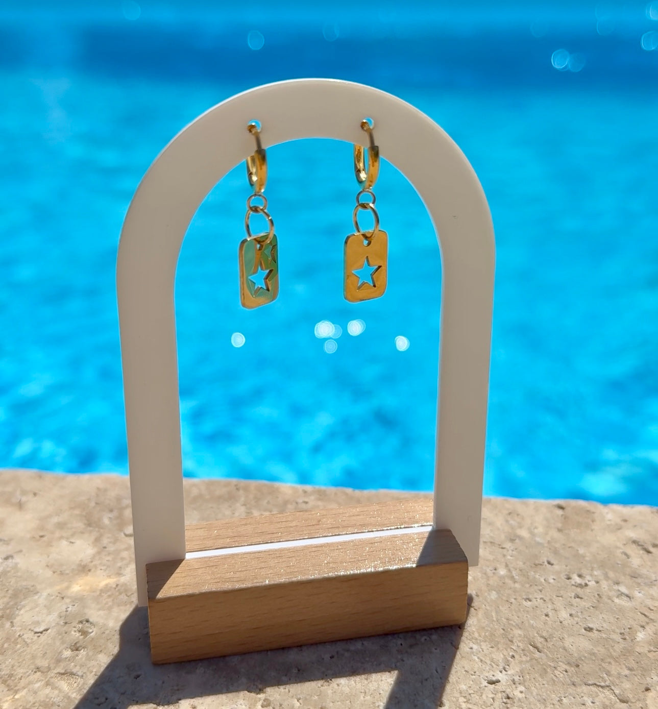 Les boucles d’oreilles sont en acier inoxydable donc aucun soucis pour la plage, piscine, douche… idéale pour cet été non ?