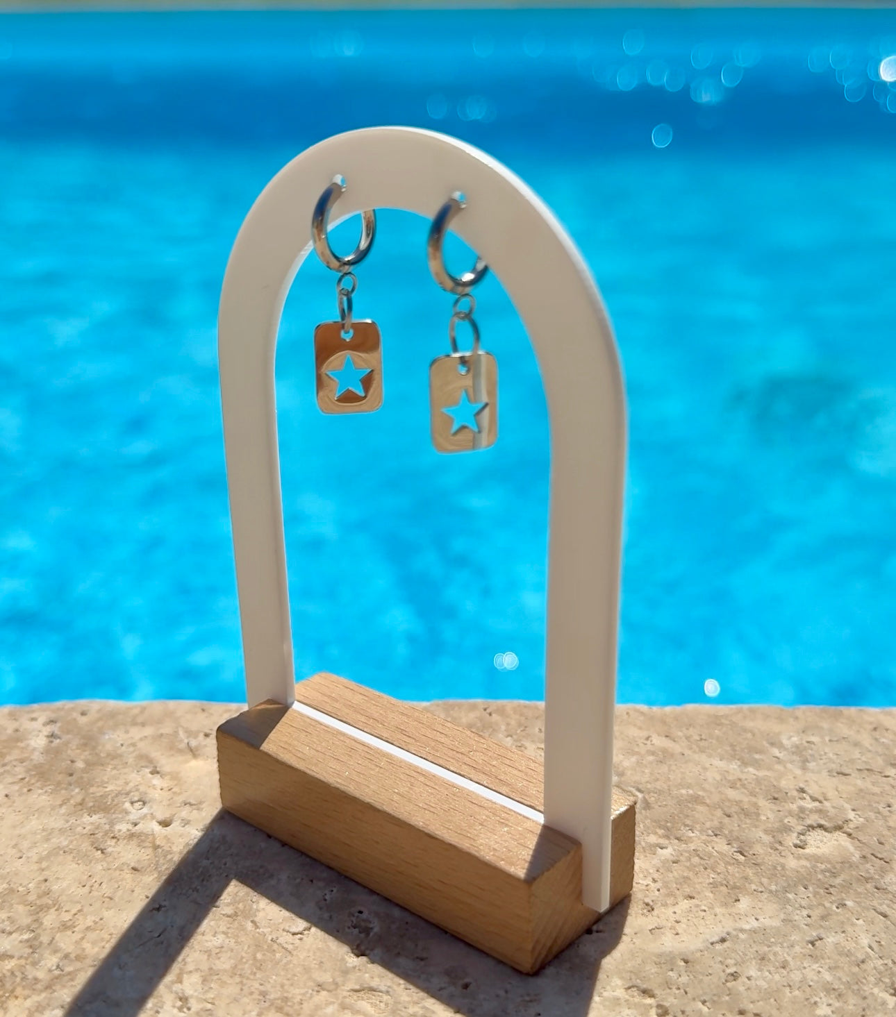 Les boucles d’oreilles sont en acier inoxydable donc aucun soucis pour la plage, piscine, douche… idéale pour cet été non ?